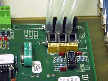 The voltage spikes produced by electromechanical switching and static discharges can cause electronics to fail. This failure can be temporary (spurious operation) or permanent (component damage). To try to prevent spurious operation of the leak tester, it was common to wire all machine connections through various interference filter cards. This had varying degrees of success. It is now possible and preferable to suppress spikes and static discharges at the leak tester PCB terminals. This results in a much neater and easier to build system. The level of immunity of new designs is extremely high, far better than most bought-in industrial PLC's.