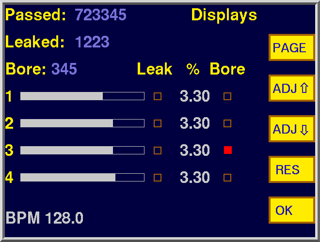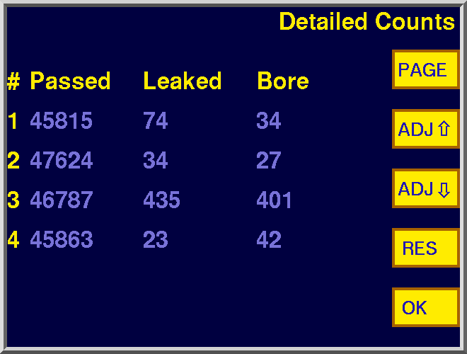 The standard system maintains counts of passed and failed bottles. More extensive data logging and SPC features can be implemented by exchanging the controller PCB for one with the SPC option fitted.