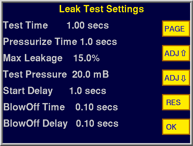 | Test Pressure | Adjustable, 10 - 40 mB. This range can easily be changed on request. |
